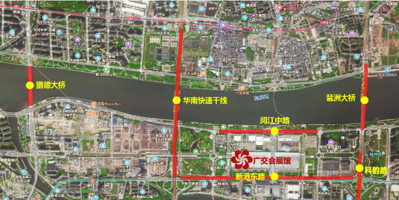 从广州火车站:乘坐地铁2号线(广州南站方向)至昌岗站,换8号线(万胜围站方向),在新港东站出口(A区)或琶洲站(B区或C)。